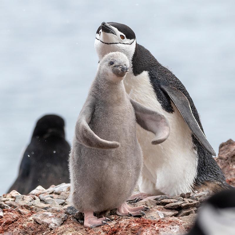 The breeding season varies for different species, but best time to see penguin chicks in Antarctica is during the Antarctic summer, from mid-December to mid-February. That’s when you’ll see chicks bumbling around together, chasing their parents for food, and being left in a crèche with their peers while the adults go hunting. You might even see chicks beginning to molt, shedding their fluffy down coats, and starting to grow adult plumage.