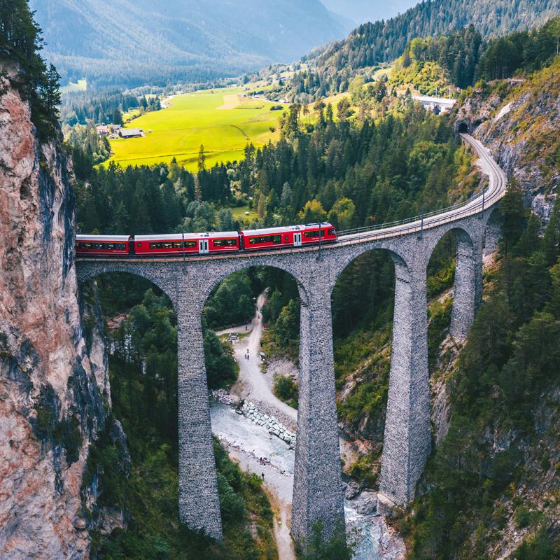This all-encompassing eight-night rail odyssey of Switzerland takes in the best this wonderful country has to offer. Start with a two-night stay in grand St Moritz from where you take a ride onboard the stunning Bernina Express train. Take the spectacular Glacier Express train to historical Zermatt for two nights, and enjoy the iconic Matterhorn Mountain via the Gornergrat Cog Railway. Travel to lakeside Montreux for a relaxing night before continuing your journey along the Golden Pass line to the traditional Swiss town of Lucerne. Enjoy three nights here with day trips on the world’s steepest cogwheel train line on Mount Pilatus, and also to the highest railway station in Europe on the Jungfrau Railway.
