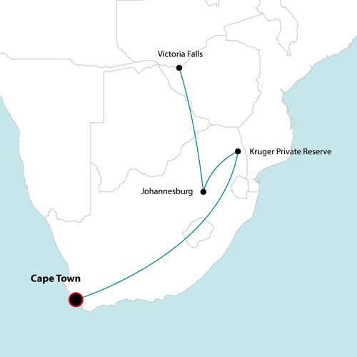 This safari showcases some of the best destinations in Southern Africa. Experience South Africa’s unique highlights and premier destinations while indulging in sublime luxury and comfort. Explore the rich tapestry of landscapes and seascapes, cosmopolitan cites and pristine wildlife reserves. Visit the world-class museums and inviting beaches or enjoy the views from the top of iconic Table Mountain. Collect a photographic gallery of the magnificent Big Five in the world renowned Kapama Private Game Reserve. Be awed by the majesty of Victoria Falls and the “smoke that thunders."