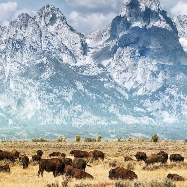 Grand Tetons thrust skyward 6,562 feet (2,000 meters) from the valley
