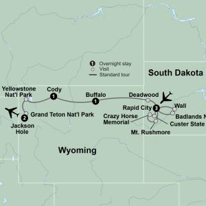 Stop in Deadwood, a rambling Western town and a National Historic Landmark. Recreations of turn-of-the-century streetlamps light the way through the restored architecture. A local guide introduces you to the history of the city, where gold, gambling and gunpowder were once the order of the day. Visit Mount Moriah Cemetery, final resting place of Wild Bill Hickok, Calamity Jane, and other figures from the Wild West. Then, it's your choice! Take a guided tour of the Adams Museum and explore dynamic exhibits that shine a light on Deadwood's legends and outlaws -OR- visit Kevin Costner's Tatanka: Story of the Bison. This interpretive center features large, awe-inspiring sculptures depicting the relationship of bison and the Lakota Native Americans. Your day ends in Buffalo, Wyoming.