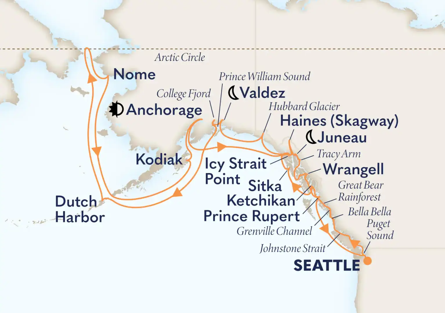 Unveil natural wonders on a Seattle roundtrip cruise to Kodiak, Valdez, Prince Rupert and more. See spectacular glaciers up close while scenic cruising Tracy Arm.